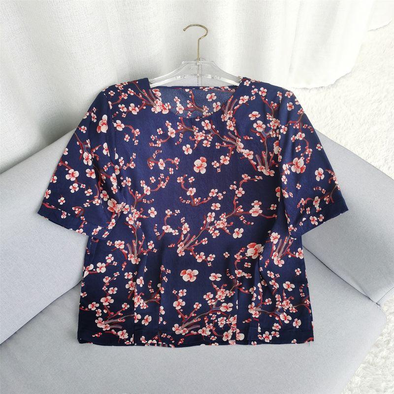 New Arrival Silk Women's Tops Silk Silks and Satins Plus Size round Neck Plum T-shirt Casual Women's Middle-Aged and Elderly Shirt