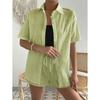 Collar Shirt Loose Lace up Shortset Lapel Shirt Loose Lace-up Shorts Suit