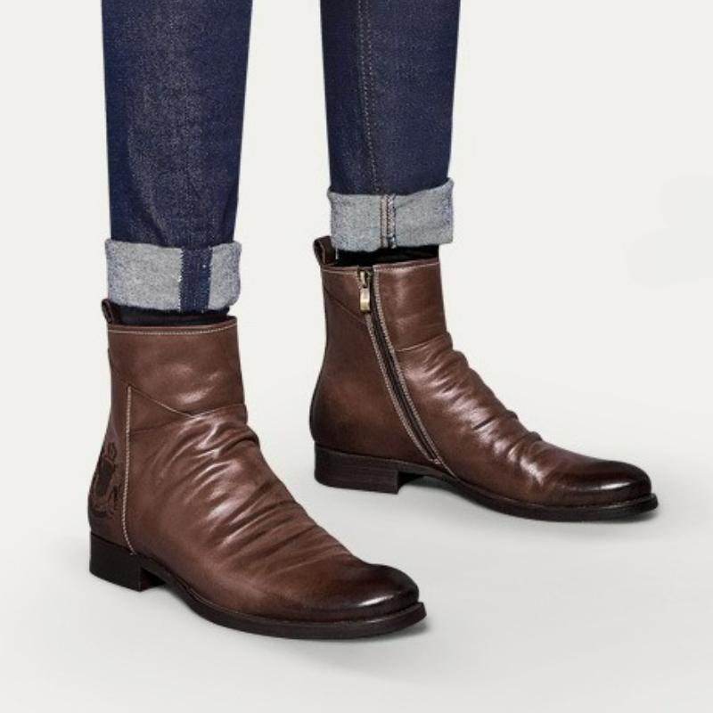 Pánské kozačky Boční zip Kožené kozačky Módní Outdoorové Pracovní Kotníkové kozačky Nadměrná velikost Boty s vysokým svrškem Ručně šité Platformové Chelsea kozačky