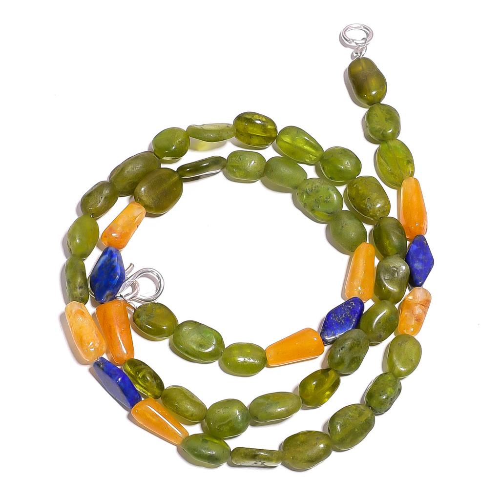 Natural Vasonite Aventurine Lapis Lazuli Gemstone Beads Necklace 17" UB-4078 UB-4078
