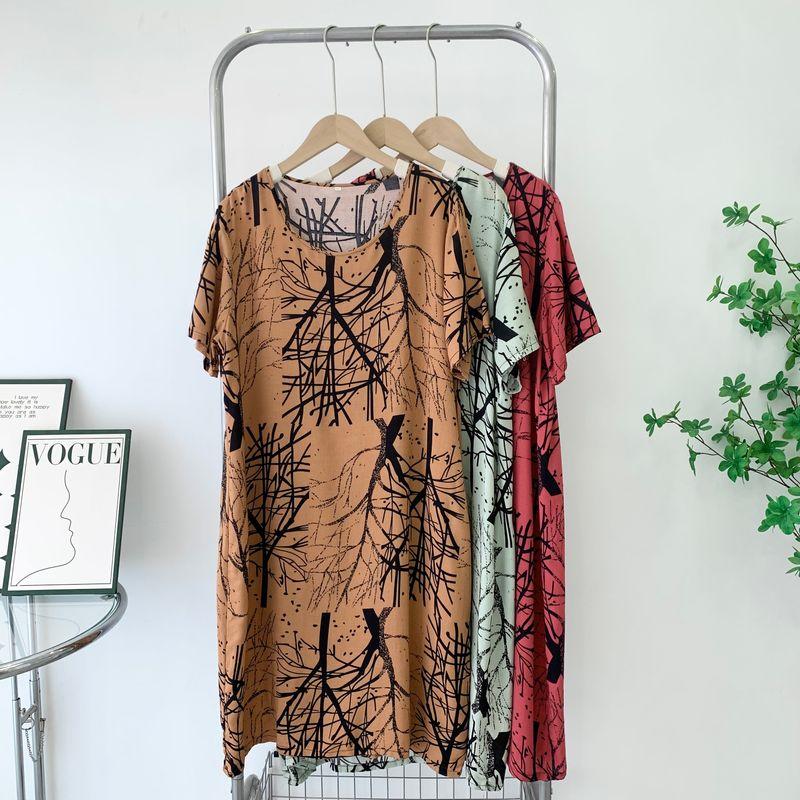 Soft Noil Poplin Dress Special Offer Artificial Cotton Home Wear Middle-Aged and Elderly Loose Summer Nightdress Short Sleeve Skirt