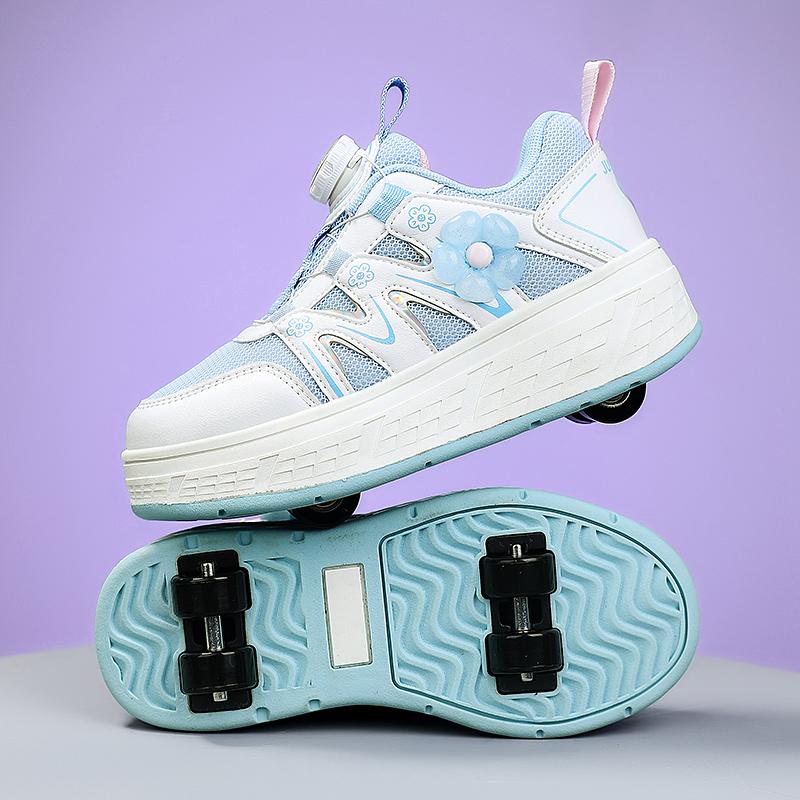 Children Four Wheels Roller Skates Girls Removable Wheels Skates Shoes Breathable Flat Walking Sneakers Kids Lace-up Skates Shoe
