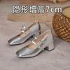 Mary Jane shoes inner height increase romantic retro light mouth single shoes summer word with silver gentle style leather shoes women