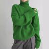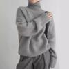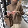 Women Autumn Winter High Collar Long Sleeve Wardrobe Staple Warm Solid Color Comfy Loose Pullovers Knitted Sweater Top
