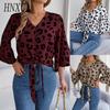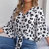 QICED Spring Summer Casual Leopard Print Tie Chiffon Top for Women