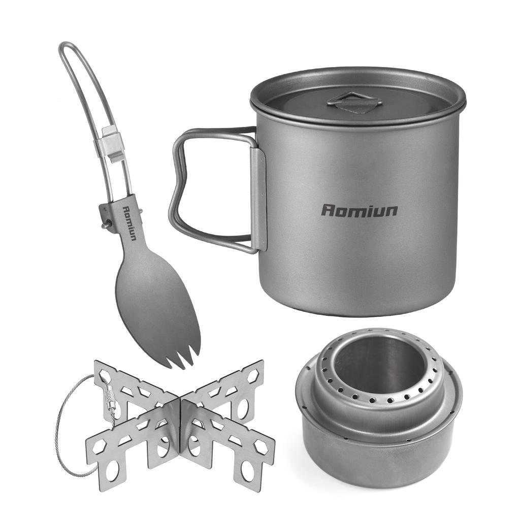 Kempingová sada na vaření Ti 500ml Hrnek Vidlička Lžíce Alkoholový vařič Křížová podpěra Přenosné kempingové sady na vaření pro 1 osobu