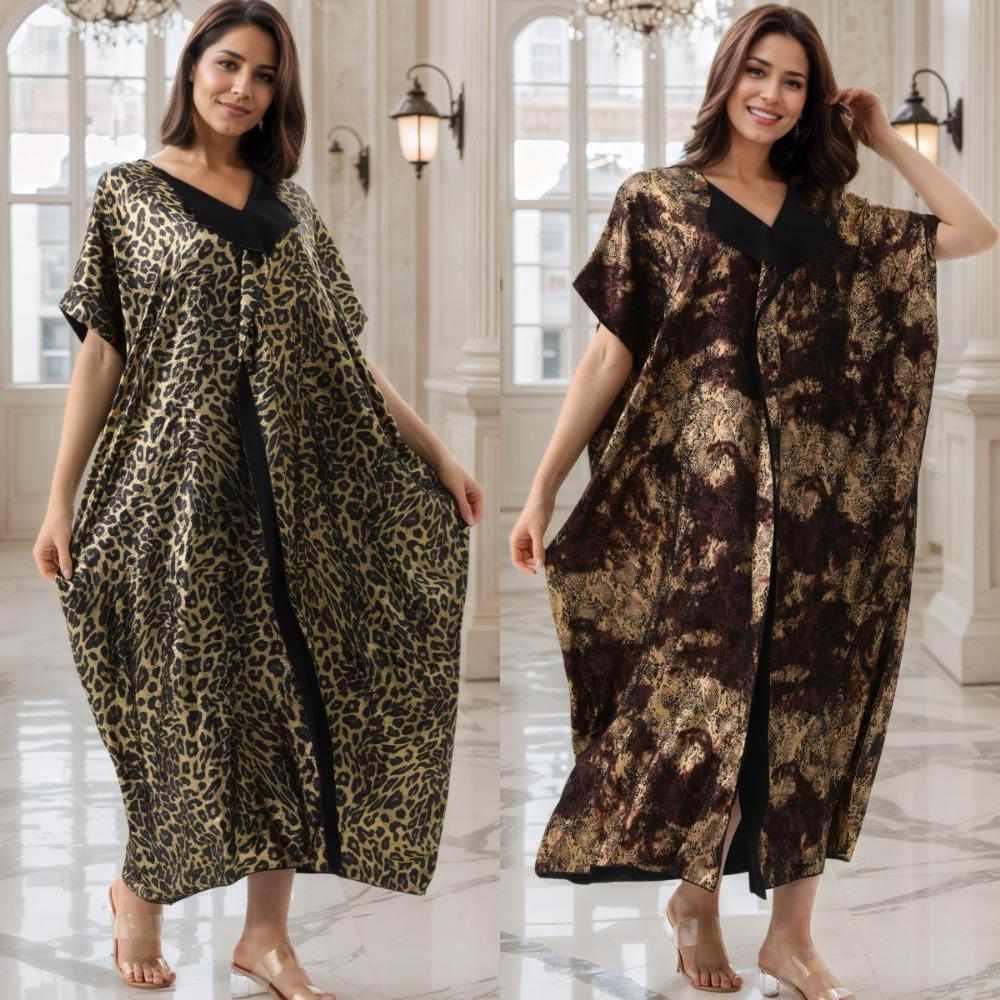 Leopard Print Bronzing Beach Blouse Lapel Turkish Robe High Luxury Dubai Robe Elegant Kaftan
