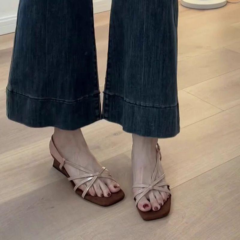 Retro style square head word with sandals women's summer new open-toed skirt sandals women
