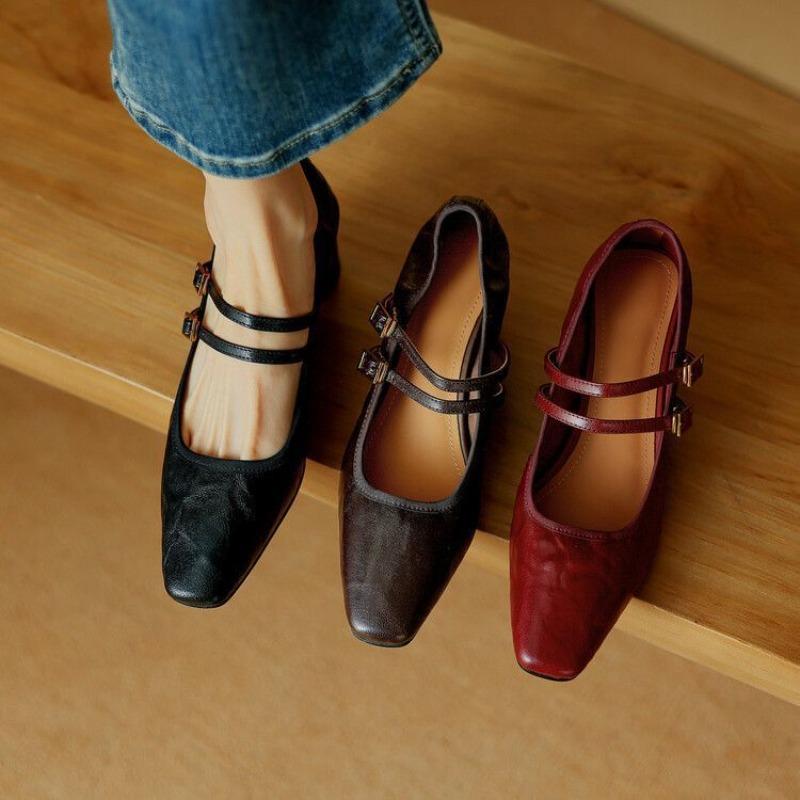 Soft sheepskin retro thick heel Mary Jane shoes women's spring and autumn new black high heels women's summer single shoes