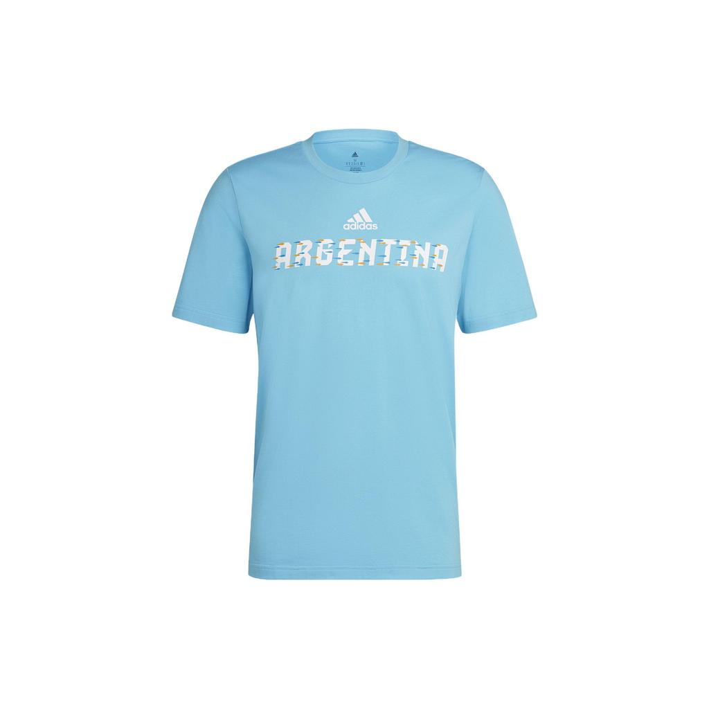 Adidas Letter Logo Crew Neck Argentina Football Sports Short Sleeve T-Shirt Men Tops Blue HD6380