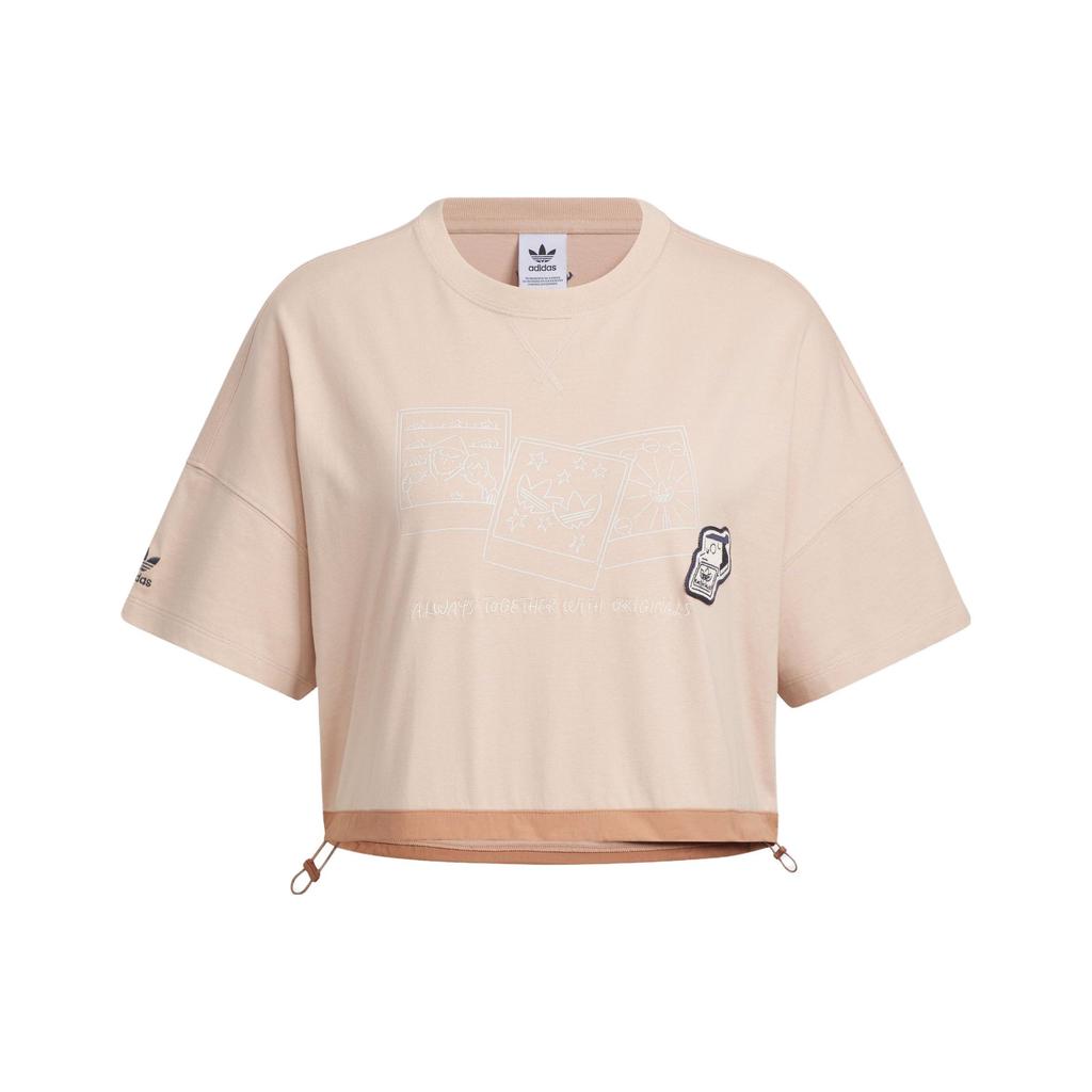 Adidas Yu Nagaba x Originals Clover SS23 Co-Branded Collection Logo Print Drawstring Cropped Loose Crew Neck T-Shirt Women Tops Pearl-Ash-Grey IS0650