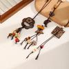 Sun Star Zircon Necklace For Women Vintage Leather Necklace Double Layered Pendant Chain Choker Jewelry