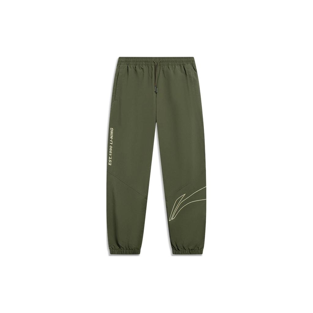 Li-Ning Pure Color Drawstring Loose Knit Sports Pants Men Bottoms Dark-Olive-Green AYKT561-5