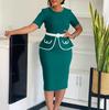 Podzimní a zimní dámské sexy šaty s kulatým výstřihem a rozparkem, temperamentní taška