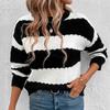 New Loose Warm Women's Round Neck Sweater Top Black and White Contrast Striped Knitted Pullover