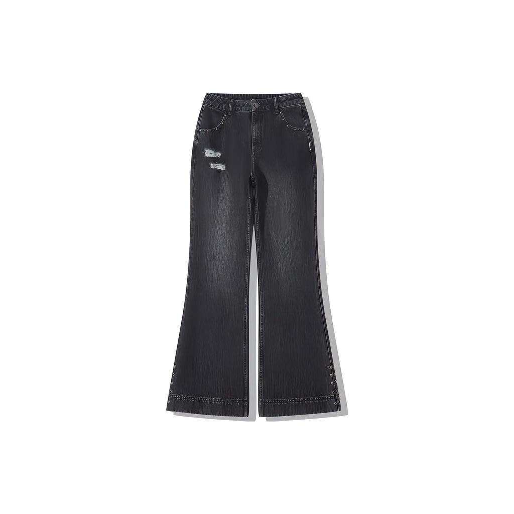 Li Ning X Pleasures Collaboration Solid Color Flared Wash Denim Pants Women bottoms Black AJQT384-1