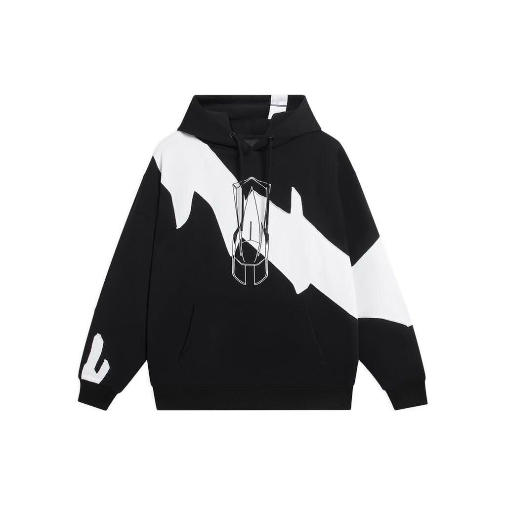 Li Ning CF Series Barevný blok Design Logo značky Tištěná mikina Unisex mikina Černá AWDSH67-1