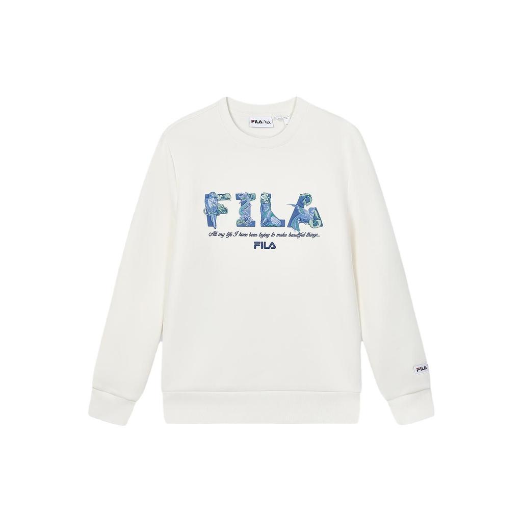 FILA X V&A Morgan Series Floral Bird Pattern Crew Neck American Style Pullover Casual Knit Sweatshirt Men sweatshirt White F11M418201F-IV
