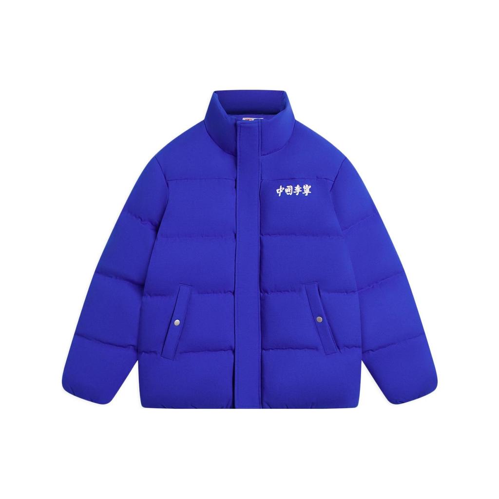Li Ning China Series Loose Fit Down Jacket With Back Chinese Character Print Unisex Outerwear Blue AYMS159-3