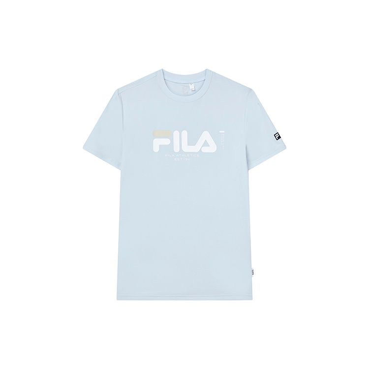 FILA Athletics Fitness Solid Color Logo Knitted Moisture-Wicking Quick-Dry Short Sleeve T-Shirt Men Tops Light-Smoke-Blue A11M221109F-BU