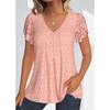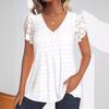 Letní jednobarevné krajkové ležérní tričko s výstřihem do V a krátkým rukávem pro ženy