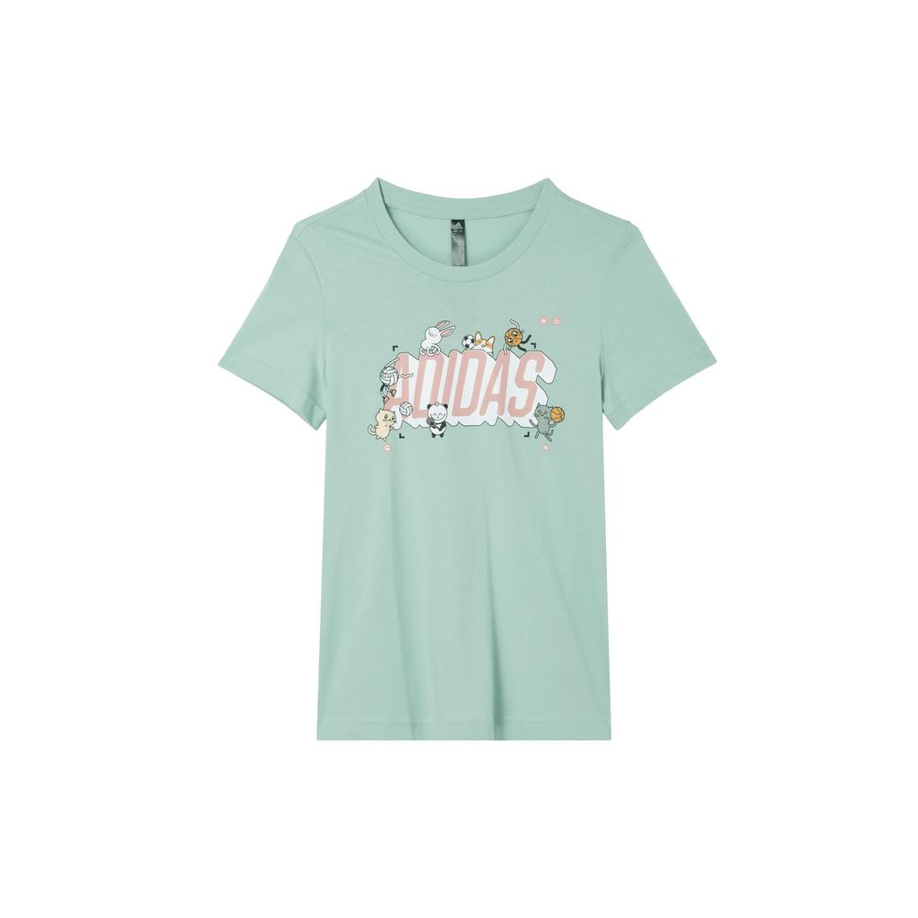 Adidas Color Letter Print Short Sleeve T-Shirt Women Tops Light-Green GD5770