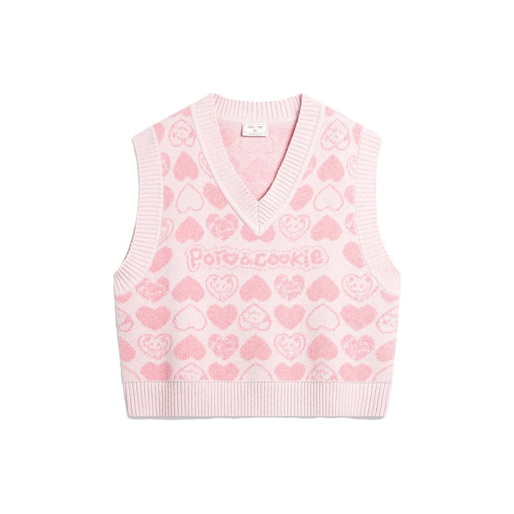 Li Ning X League Of Legends Poro Collaboration V-Neck Loose Comfortable Breathable Knit Top Women tops Light-Pink AMVT030-3