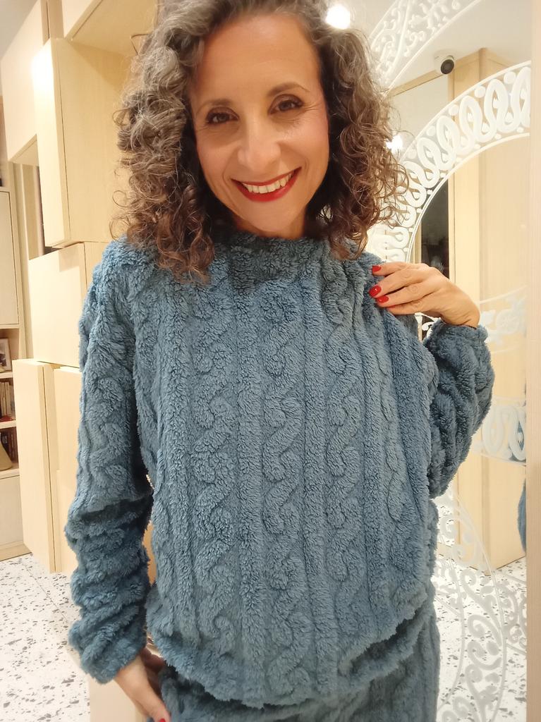 Perfektní zimní set – hřejivý i lichotivý! ❄️ Koupila jsem tuto sadu na chladné období a jsem prostě zamilovaná! Látka je měkká a příjemná, sametová a hřeje přesně tak, jak potřebuji pro chladné dny podzimu a zimy. Svetr lichotí postavě, dobře sedí, aniž by byl příliš těsný, a halenka spolu s kalhotami vytvářejí elegantní, ale také super pohodlný vzhled.. Dámský střih a vysoký pas kalhot dodávají pocit dokonalého přizpůsobení tělu. Nečekala jsem, že pyžamový set bude vypadat tak dobře – klidně se v něm dá vyjít z domu do obchodu nebo dokonce na lehkou zábavu.. Materiál je kvalitní, barva drží i po vyprání a na dotek zůstává měkký. Zkrátka – stojí za každou korunu! Velmi doporučuji pro ty, kdo hledají pohodlí se šikem.