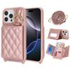 For iPhone 16 Pro Case with Lanyard/Mirror/Card Holder Grids Pattern RFID Blocking Phone Cover