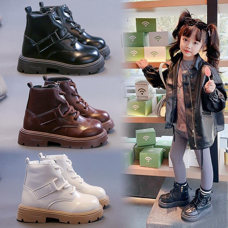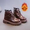 Girls' Handsome Leather Boots Fashionable and Comfortable Leather Shoes Fashionable and Versatile Short Boots Plush Cotton Boots
