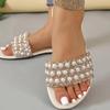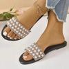 Summer new large size flat-bottomed pearl one-word cool slippers round head dew rhinestone women's sandals slipprs