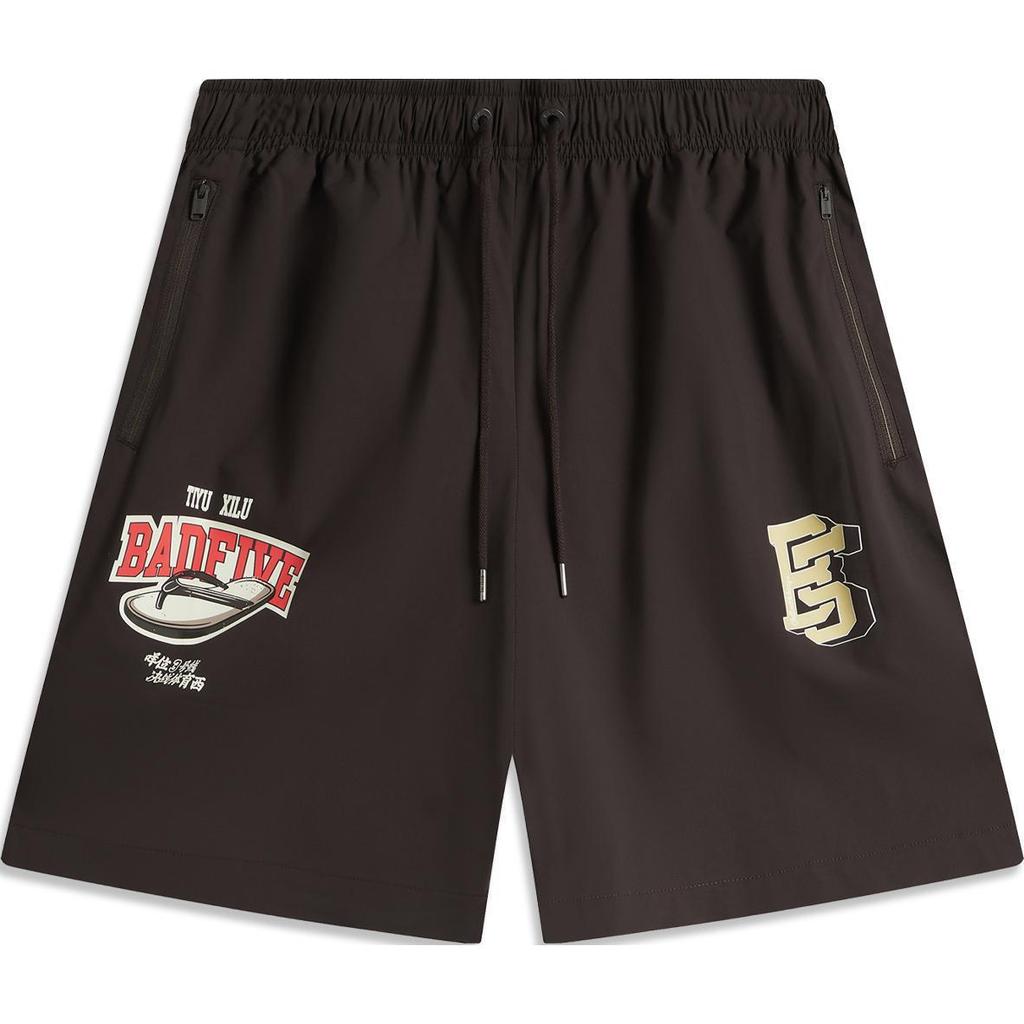 Li Ning Badfive Casual Tea Print Comfortable Lace-Up Sports Shorts Men shorts Black Chocolate AKSU811-2