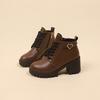 Martin boots women's autumn new high-heeled single boots belt buckle women's shoes thick-heeled short boots round head lace-up bare boots