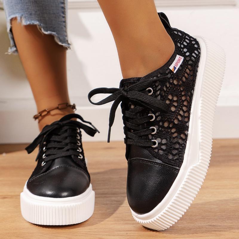 Šněrovací dámské letní nové síťované prodyšné ležérní módní bílé boty s hrubou podrážkou ve velkých velikostech