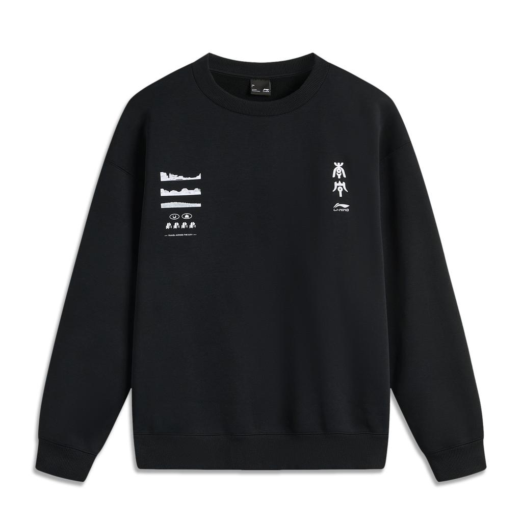 Li Ning Infrared Warm Letter Kulatý výstřih Fleecová mikina přes hlavu Unisex mikina Černá AWDU699-4