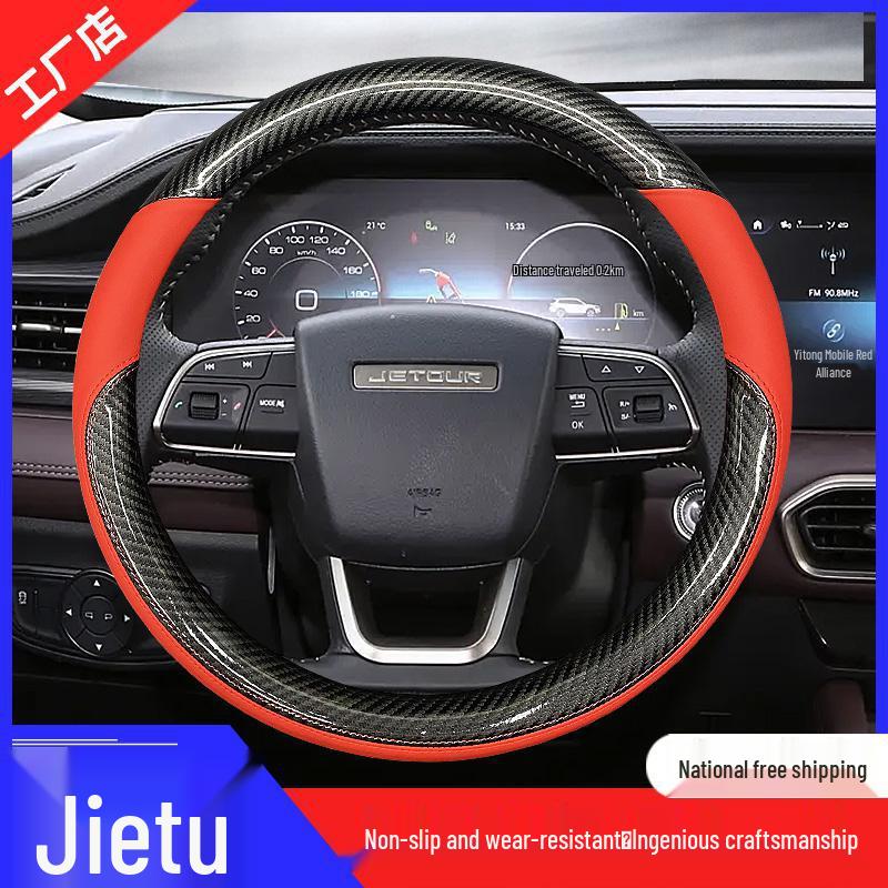Carbon Fiber Pattern Steering Wheel Cover, All-Season, Non-Slip, Wear-Resistant, Hand-Sewn, Sweat-Absorbent Grip, Interior Accessory