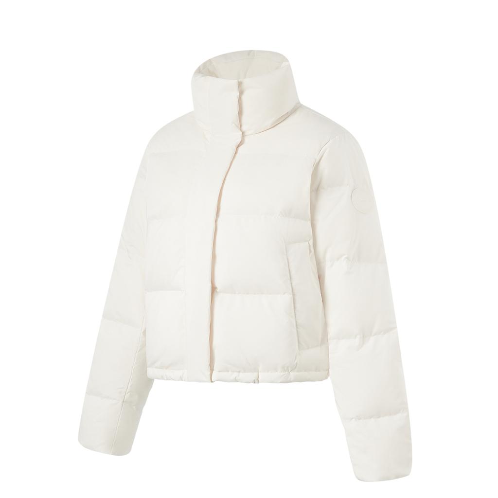 Li-Ning Water-Resistant Solid Color Zip-Up Stand Collar Comfortable Breathable Short Casual Down Jacket Women Jackets Champagne-White AYMU102-1
