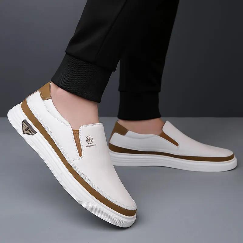 Fashion Summer Fashionable Comfortable Men's Shoes New Versatile White Shoes Leather Breathable Soft Soled Cowhide Leather Board Shoes