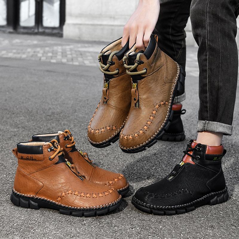 Fashion Handmade men's casual high top shoes High quality minimalist style Leisure Business Outdoor comfortable shoes autumnd winter
