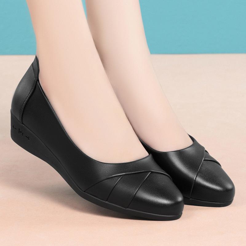 Fashion New Women Soft Leather Low Heel Comfortable Middle-aged Shoes Female Pumps Office Work Shoes Casual Women Wedges Shoes 2025