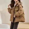 Červená krátká péřová bunda s kapucí dámská zimní nová krátká stojáček výbuchy slim a tlustý kabát.