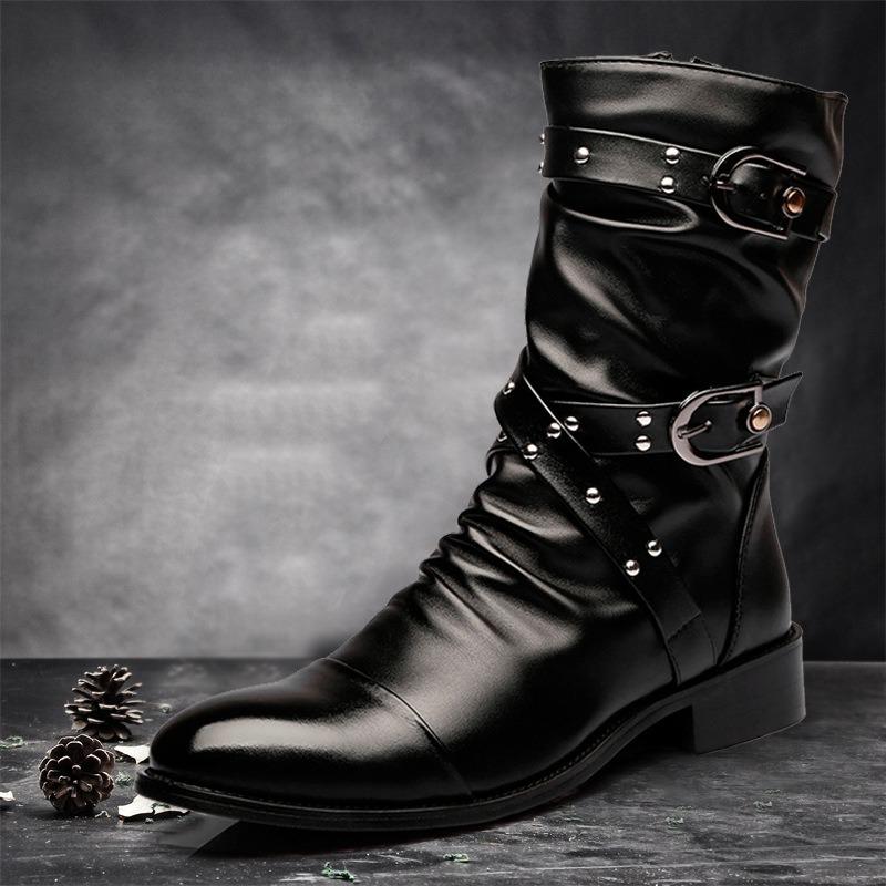 Módní platformové boty pro muže Britský špičatý high-end pocit, niche cool boty přezka na opasku s designem silného podpatku pro rytířské pánské boty