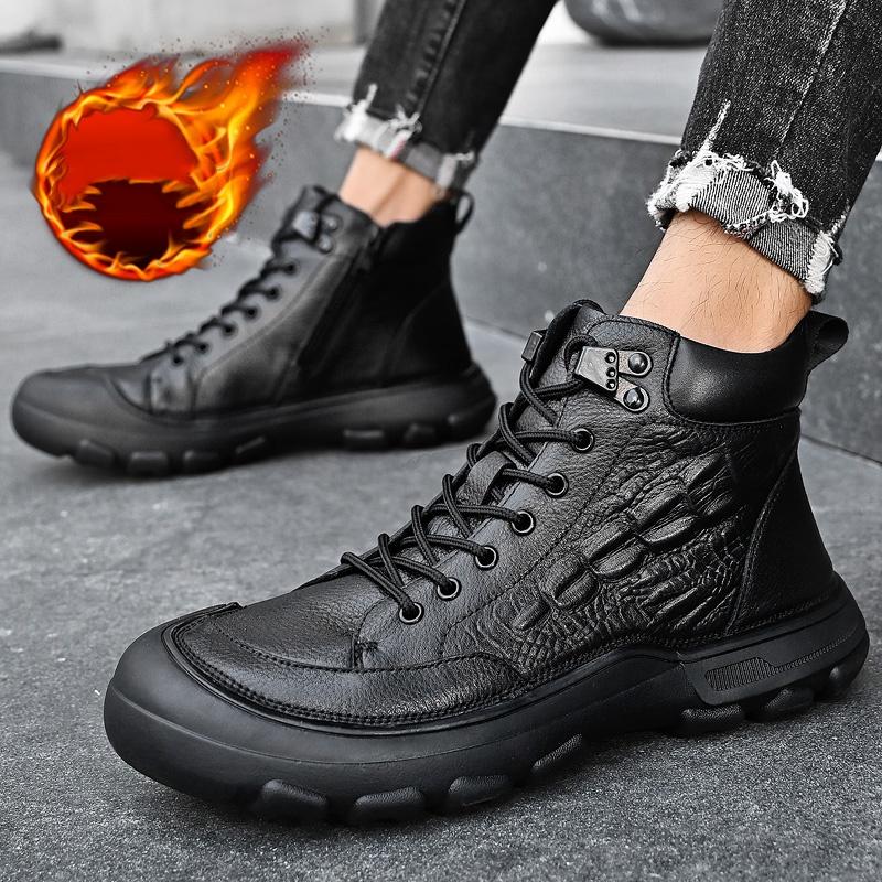 Fashion Genuine Leather Men's High-top Boots Hiking Durable Retro StyleHigh-quality Casual Work Boots Winter Thick Bottom Non-Slip