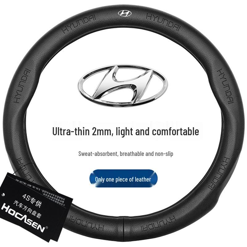 Premium Genuine Leather Steering Wheel Cover for Modern Cars: Mistra, Tucson, Santa Fe, Reina, IX35, IX25, Elantra, Langdong