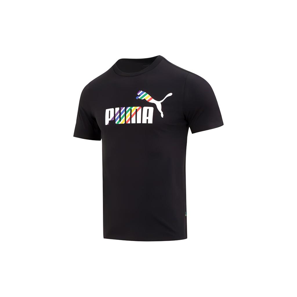 Puma Pánské tričko s krátkým rukávem a kulatým výstřihem s potiskem loga značky Rainbow Černé 676671-01