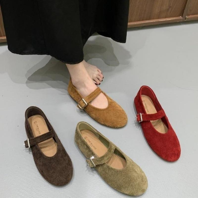 Fashion New Style Fashion Women's Ballet Flats Retro Red Double Belt Buckle Decoration Casual High Quality Big Size Lady Mary Jane Shoes