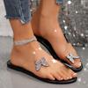 Módní dámské pantofle Letní nadměrná velikost Boty s jedním páskem Dámské jednobarevné mašličkové ploché sandály Venkovní plážové pantofle Elegantní nazouváky Dámské