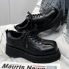 Fashion 2025 7cm High Platform New Thick Bottom Black Blood Series Derby Height Increasing Round Toe Casual Leather Shoes