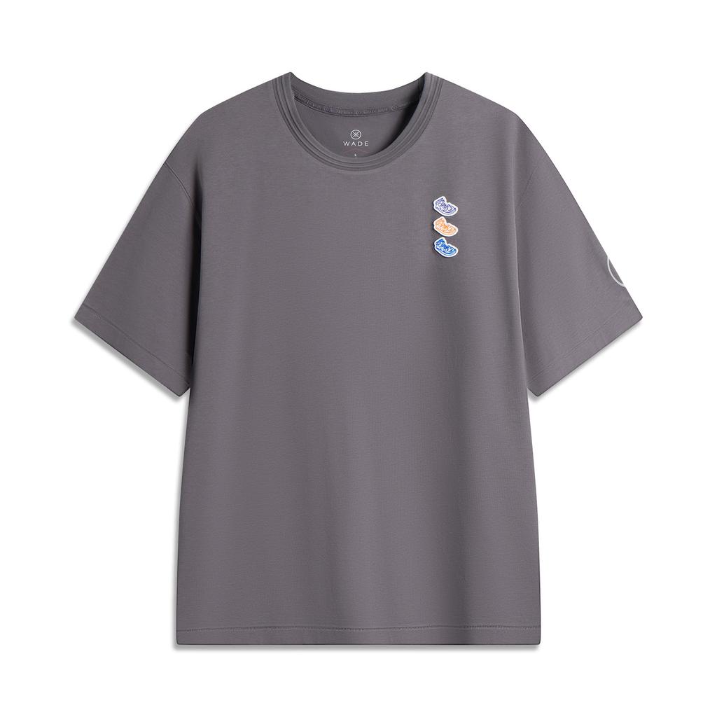 Li Ning Basketball Series Letter Print Breathable Versatile Loose Short Sleeve T-Shirt Men Tops Carbon-Gray Purple AHSV083-5