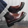 Fashion British Style Men's Street High Top Shoes Thick Soled Wear-resistant Men's Workwear Boots Versatile Black Leather Casual Shoes
